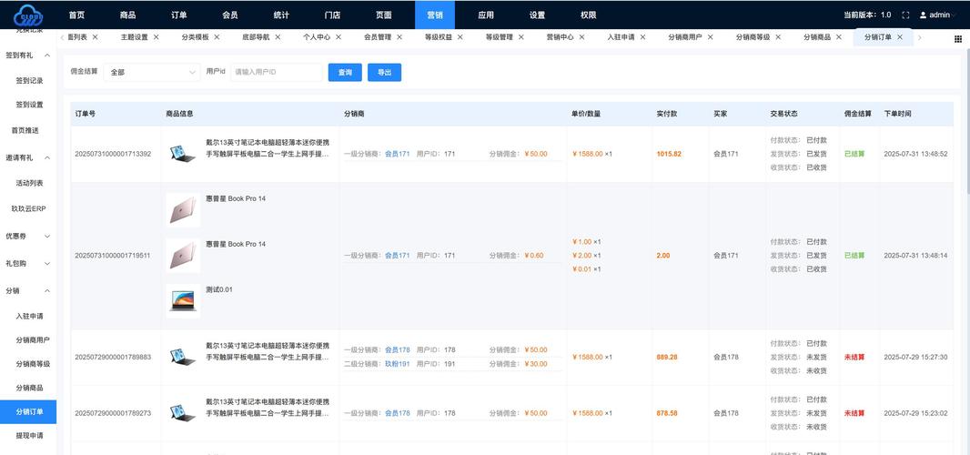 - 订单管理:订单管理模块用于记录分销订单,包括订单号、下单人、订单金额等信息。