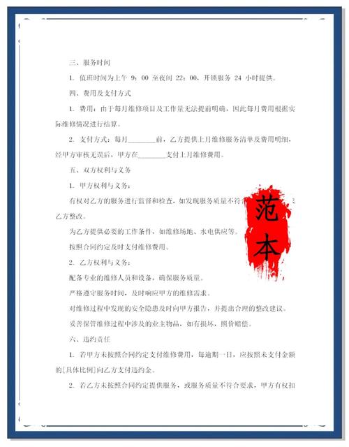明确合同的时间和范围 维护合同书的时间和范围需要清晰明了,以便双方在维护期间能够顺利进行,维护合同书的时间通常需要在网站建立后3天内签订,或者根据双方的具体情况而定。