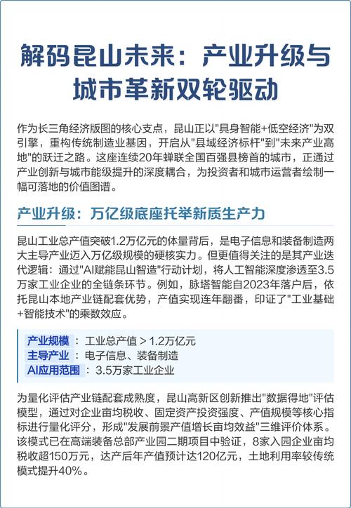 - 产业升级:帮助企业提升竞争力,打造创新型企业,推动昆山经济转型升级。