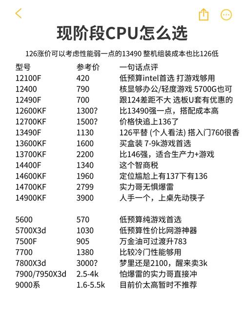选择品牌时,优先考虑核心竞争力强的品牌,如高通、AMD、联发科等,基础处理器的市场地位同样重要,同一品牌的不同型号价格差异较大。 - 价格区间