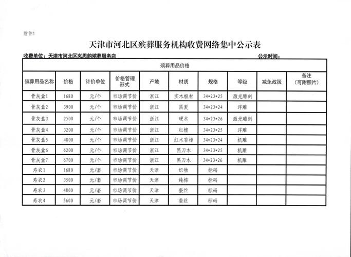 网络价格表的基本情况