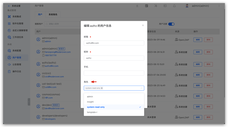 - 在用户列表中,找到目标用户或系统。