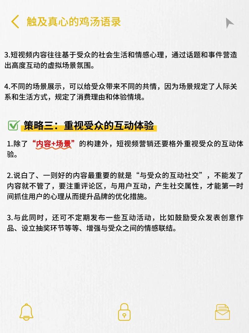 营销的核心在于突出用户的需求和痛点,通过精心设计的内容,可以快速吸引用户的注意力,从而提高观看量和转化率,如果视频能够解决用户的一个具体问题,用户可能会自发地观看并进行互动。
