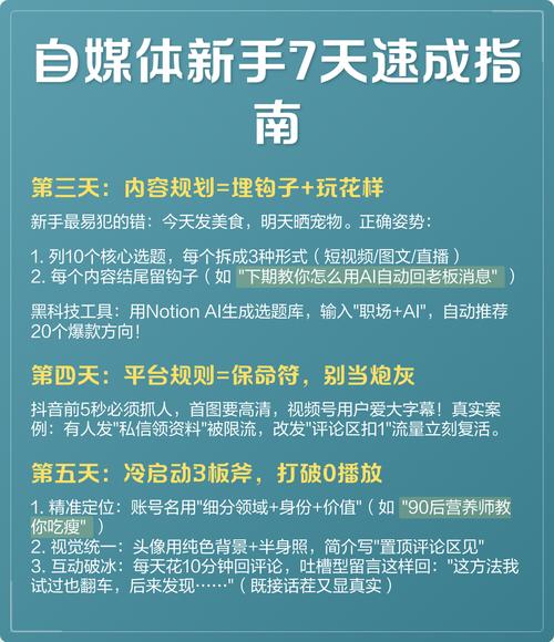 - :自媒体作者需要写出高质量的内容,包括文章、视频、小视频、动态图解等,确保内容原创且具有吸引力。