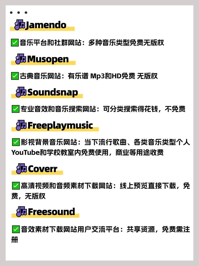 - 社交媒体:音乐资源网站通常会利用社交媒体平台进行内容发布,如微信公众号、微博、抖音、快手等,这些平台适合分享音乐视频、音乐动态、音乐故事等内容。
