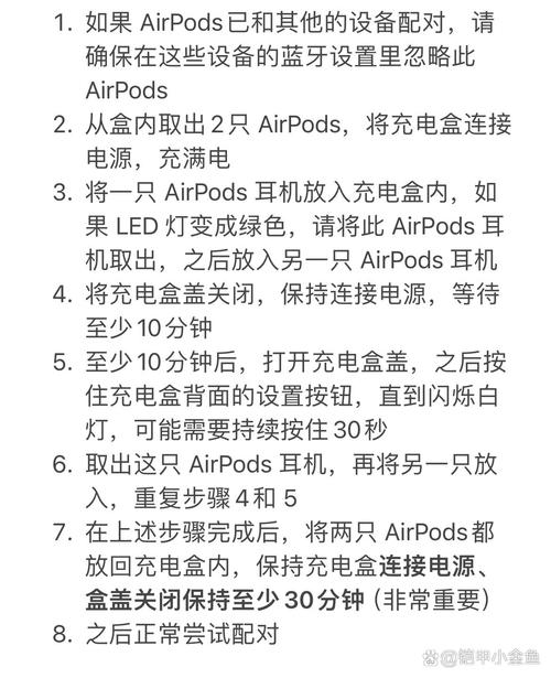 重新连接设备:完成所有设置后,重新连接设备,确保AirPods能够正常工作。