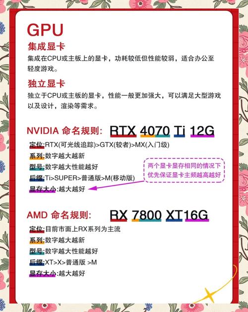 需要注意的是,不同显卡针对处理器的适配性不同,NVIDIA显卡更适合i5和i7处理器,而AMD显卡更适合i3处理器,如果选择NVIDIA显卡,建议选择适合i5或i7的显卡;如果选择AMD显卡,建议选择适合i3的显卡。