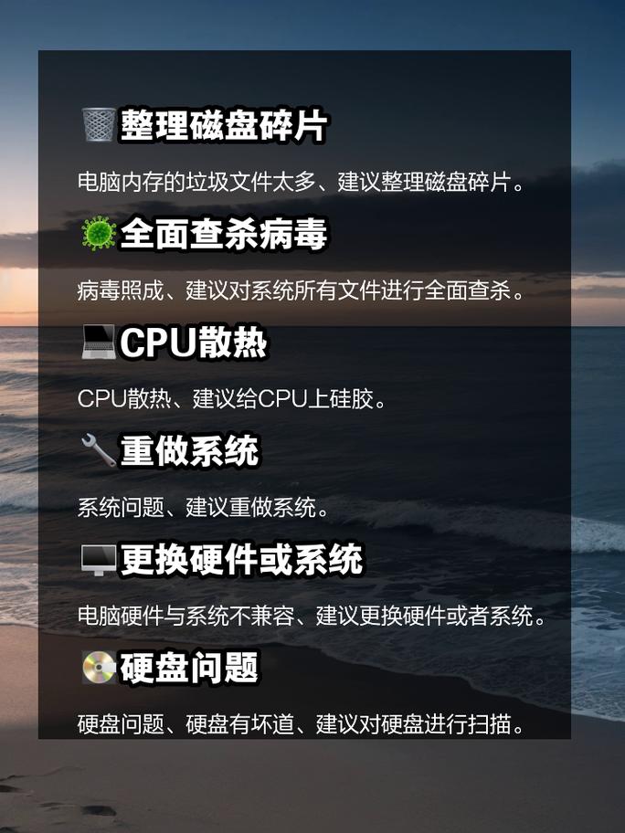 电脑卡机是现代生活中的常见问题,涉及硬件、软件、网络等多个因素,面对这个问题,我们可以通过以下步骤逐一排查和解决: