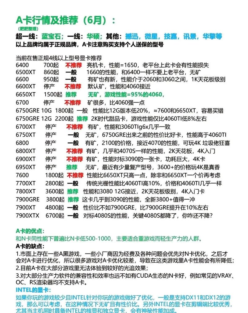 - 品牌:选择知名品牌的显卡,如AMD、NVIDIA、AMD Radeon等,价格稳定可靠。