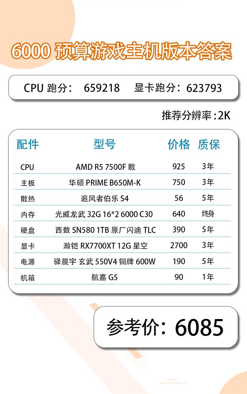 (图片来源网络,侵删)- 处理器选择:选择合适的处理器是配置的基础,处理器决定了计算能力和游戏性能,选择性能强劲但价格适中的处理器是关键。