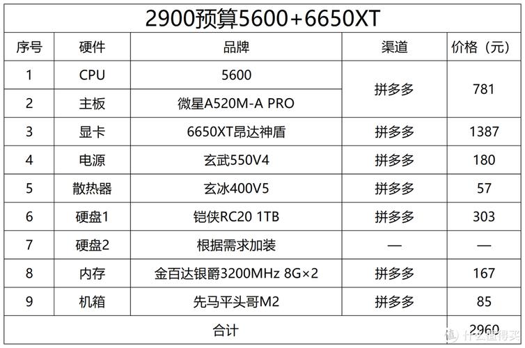 注意: 以上内容仅为示例,实际配置还需结合个人需求、预算和品牌选择。
