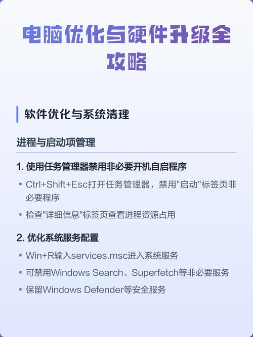 硬件环境优化是提升电脑性能的关键,以下是一些要点: