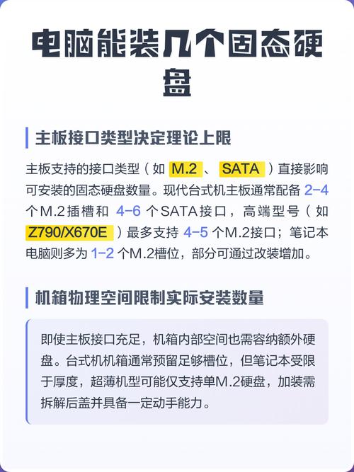 固态硬盘通常采用插口的方式连接,分为插槽式和插头式两种,插槽式固态硬盘连接更方便,但需注意其连接方式(如普通插槽或特殊插槽)对性能的影响。
