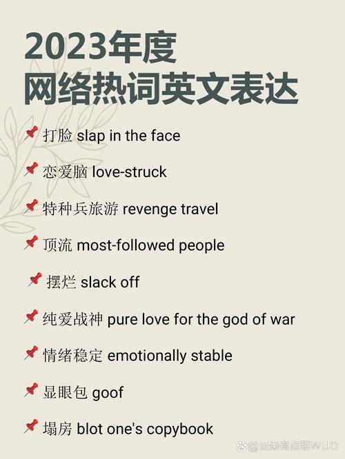 网络流行语英语单词是自媒体作者掌握网络文化的重要工具,通过学习这些网络用语的英语单词,你不仅能更好地理解网络文化,还能在产品推广、内容创作中占据优势,以下是网络流行语英语单词的指南,希望对你有所帮助。