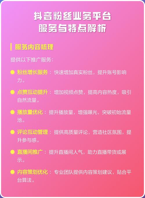 在提升粉丝数量的过程中,平台自助点赞和抖音粉丝平台代网是两大核心功能,它们共同作用于粉丝,为粉丝带来高效提升粉丝数量的工具,以下是一些具体步骤和方法,帮助粉丝高效提升粉丝数量。