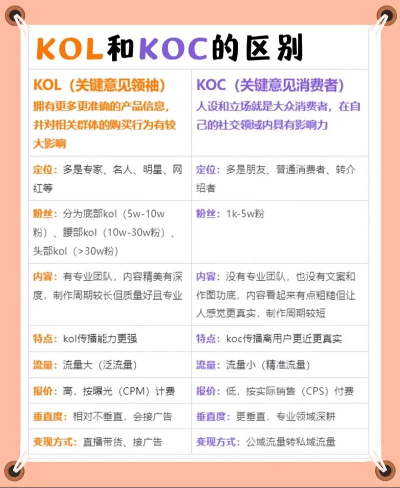 - 定义与特点:KOL是指能够与目标品牌建立情感共鸣关系的互动内容创作者,他们通过短视频、直播等平台与目标品牌或企业建立联系,提供有价值的内容。