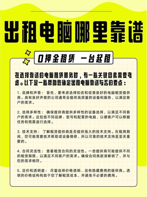 在现代商业环境中,办公电脑租赁已成为一种高效且经济的办公解决方案,无论是企业间的协作办公,还是个人办公需求,选择适合的租赁公司和设备,都能显著提升工作效率,面对众多租赁公司,如何选择一家性价比高的租赁平台,以及如何维护好租赁设备,往往让许多企业感到困惑,本文将为您全面指南如何选择、维护和管理办公电脑租赁服务。