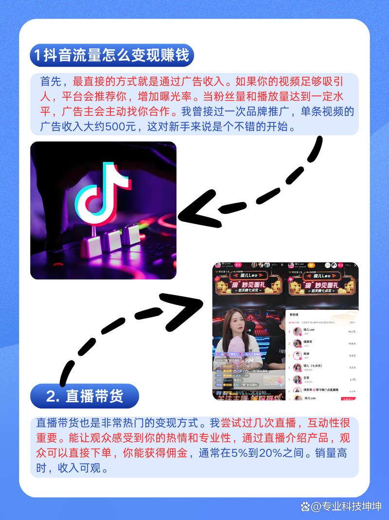 - 利用平台流量:抖音平台本身提供流量,可以通过广告收入和视频展示位置来获取流量。